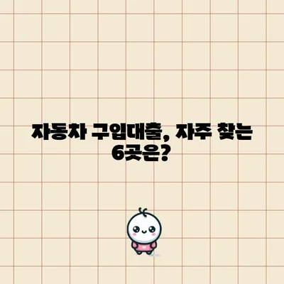 자동차 구입대출 자주 찾는 6 곳에 대해 자세히 알아보겠습니다. 자동차를 구매하기 위해 대출을 고려하는 분들이 많습니다. 이 글에서는 자동차 구입 대출의 종류와 다양한 금융기관의 상품을 상세히 소개하겠습니다.
