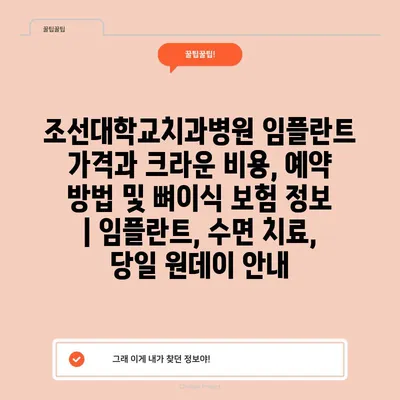 조선대학교치과병원 임플란트 가격과 크라운 비용, 예약 방법 및 뼈이식 보험 정보 | 임플란트, 수면 치료, 당일 원데이 공지에 대해 자주 묻는 질문 TOP 5