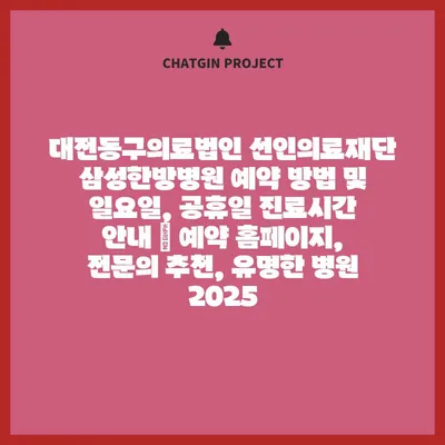 대전동구의료법인 선인의료재단 삼성한방병원 예약 방법 및 일요일, 공휴일 진료시간 공지 | 예약 홈페이지, 전연락 추천, 유명한 병원 2025 에 대해 자주 묻는 질문 TOP 5