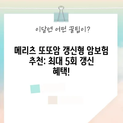 메리츠 또또암 갱신형 암보험 추천: 최대 5회 갱신 혜택!