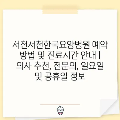✅ 서천서천한국요양병원의 진료시간과 예약 방법을 간편하게 알아보세요.