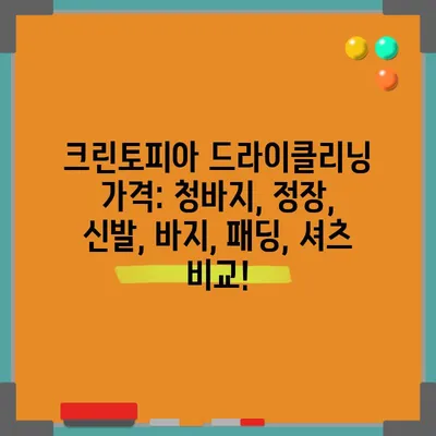 💡 크린토피아의 다양한 드라이클리닝 가격을 한눈에 비교해 보세요. 💡