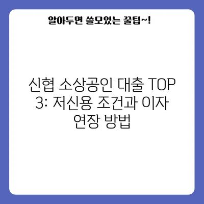신협 소상공인 대출 TOP 3 완벽 정리 저신용 조건 연장 이자 이번 글에서는 신협 소상공인 대출 TOP 3에 대한 완벽한 …