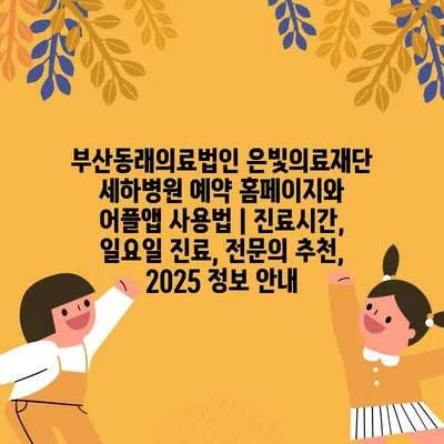 부산동래의료법인 은빛의료재단 세하병원 예약 홈페이지와 어플앱 사용법에 대해 공지제공합니다. 우선, 세하병원은 매일 오전 9시부터 오후 5시까지 진료를 시행합니다. 진료시간 외에도 …