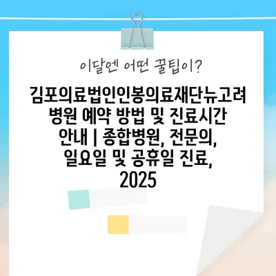 김포의료법인인봉의료재단뉴고려병원 예약 방법 및 진료시간 공지 | 종합병원, 전연락, 일요일 및 공휴일 진료, 2025 김포에 위치한 뉴고려병원은 다양한 진료과목을 갖춘 …