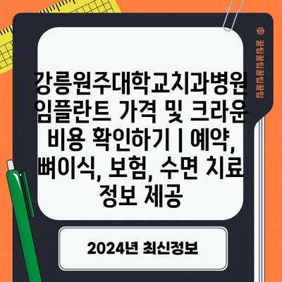 강릉원주대학교치과병원 임플란트 가격 및 크라운 비용 확인하기 | 예약, 뼈이식, 보험, 수면 치료 정보 제공 강릉원주대학교치과병원에서는 임플란트와 크라운 비용에 대한 …