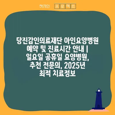 당진감인의료재단 아인요양병원 예약 및 진료시간 공지 이 병원은 일요일 및 공휴일에도 운영되어, 언제든지 환자분들이 편리하게 이용할 수 있도록 합니다. 예약은 …