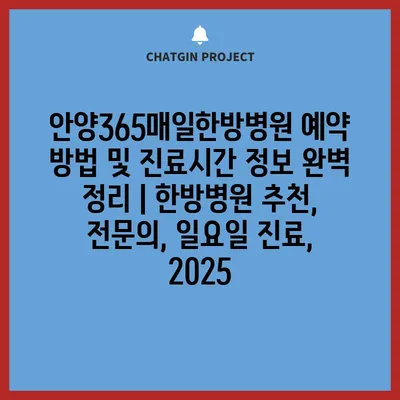 안양365매일한방병원 예약 방법 및 진료시간 정보 완벽 정리 | 한방병원 추천, 전연락, 일요일 진료, 2025 안양365매일한방병원은 다양한 한방 치료를 제공하며, …