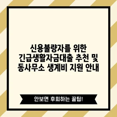 긴급생활자금대출 추천 신용불량자 동사무소 생계비 지원 메타 설명 신용불량자를 위한 긴급생활자금대출과 동사무소 생계비 지원에 대해 알아보고, 필요한 조건과 단계별 설명을 …