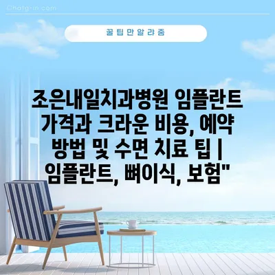 조은내일치과병원 임플란트 가격과 크라운 비용, 예약 방법 및 수면 치료 팁에 대해 알아보겠습니다. 임플란트는 치료 방법에 따라 가격이 달라질 수 …