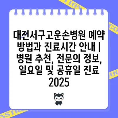 대전서구고운손병원 예약 방법과 진료시간 공지 | 병원 추천, 전연락 정보, 일요일 및 공휴일 진료 2025 대전서구고운손병원은 편리한 예약 시스템을 알려드려 …