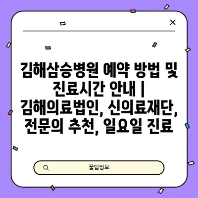 김해삼승병원 예약 방법 및 진료시간 공지입니다. 김해의료법인 소속의 이 병원은 신의료재단으로 운영되며, 다양한 전연락를 보유하고 있습니다. 예약은 전화나 병원 웹사이트를 …