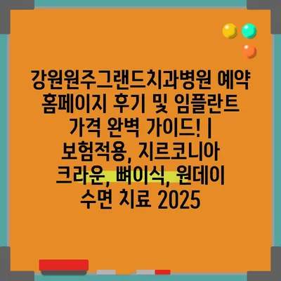 강원원주그랜드치과병원 예약 홈페이지 후기 및 임플란트 가격 완벽 설명서! | 보험적용, 지르코니아 크라운, 뼈이식, 원데이 수면 치료 2025 강원원주그랜드치과병원은 최신 …