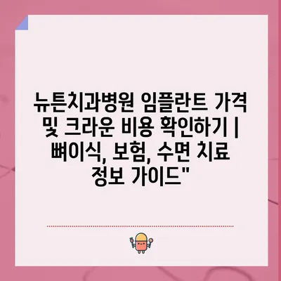 뉴튼치과병원 임플란트 가격 및 크라운 비용 확인하기 | 뼈이식, 보험, 수면 치료 정보 설명서 치아 건강을 지키기 위해 선택하는 임플란트는 …