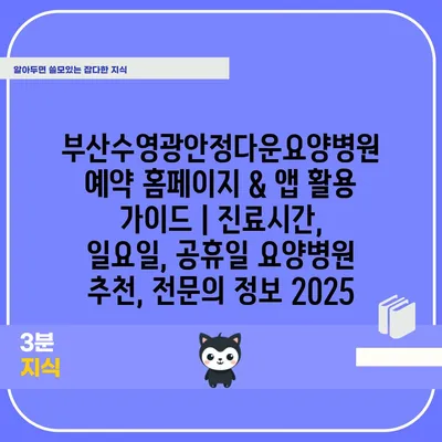 부산수영광안정다운요양병원 예약 홈페이지 & 앱 활용 가이드 | 진료시간, 일요일, 공휴일 요양병원 추천, 전문의 정보 2025 부산수영광안정다운요양병원은 환자 여러분이 보다 …