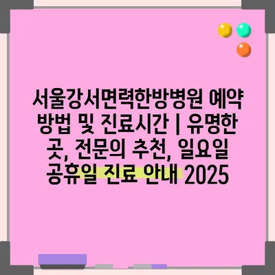 서울강서면력한방병원 예약 방법 및 진료시간에 대해 알아보겠습니다. 이곳은 서울 강서구에 위치한 전문 한방병원으로, 다양한 한방 치료를 알려알려드리겠습니다. 예약은 전화 또는 …