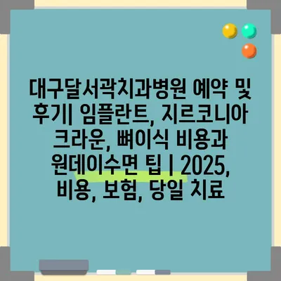 대구달서곽치과병원 예약 및 후기| 임플란트, 지르코니아 크라운, 뼈이식 비용과 원데이수면 팁 | 2025, 비용, 보험, 당일 치료에 대해 알아보겠습니다. 치과 …