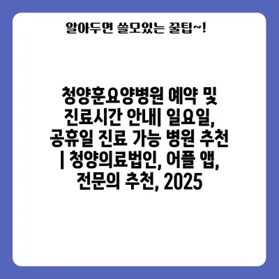 청양훈요양병원 예약 및 진료시간 공지는 환자 여러분의 편의를 위해 체계적으로 관리되고 있습니다. 우리 병원은 주말인 일요일뿐만 아니라 공휴일에도 진료가 가능하여 …