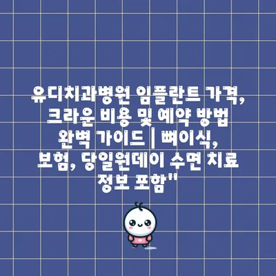 유디치과병원 임플란트 가격, 크라운 비용 및 예약 방법 완벽 가이드 | 뼈이식, 보험, 당일원데이 수면 치료 정보 포함”