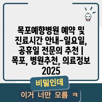 목포예향병원 예약 및 진료시간 공지-일요일, 공휴일 전연락 추천 | 목포, 병원추천, 의료정보 2025 목포예향병원은 환자 중심의 전문 진료로 많은 이들에게 …