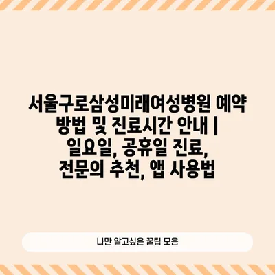 서울구로삼성미래여성병원 예약 방법 및 진료시간 공지 서울구로삼성미래여성병원에서 진료를 받고자 하시는 분들은 예약을 통해 보다 원활한 진료를 받으실 수 있습니다. 예약은 …