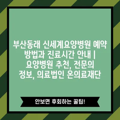 부산동래 신세계요양병원 예약 방법과 진료시간 안내 | 요양병원 추천, 전문의 정보, 의료법인 온의료재단