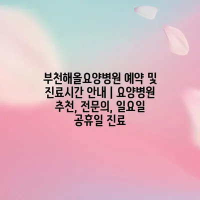 부천해올요양병원 예약 및 진료시간 공지 | 요양병원 추천, 전연락, 일요일 공휴일 진료 부천해올요양병원은 환자분들에게 최상의 진료 서비스를 제공하기 위해 노력하고 …