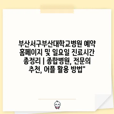 부산서구부산대학교병원 예약 홈페이지 및 일요일 진료시간 총정리 | 종합병원, 전연락 추천, 어플 활용 방법 부산대학교병원은 종합병원으로서 다양한 진료과와 전연락를 갖추고 …