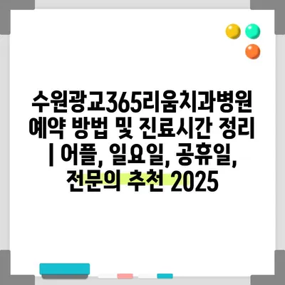수원광교365리움치과병원 예약 방법 및 진료시간 정리 | 어플, 일요일, 공휴일, 전문의 추천 2025