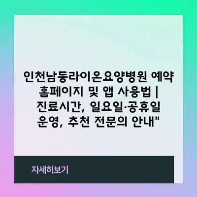 인천남동라이온요양병원 예약 홈페이지 및 앱 사용법에 대해 알아보겠습니다. 본 병원은 온라인 예약 시스템을 통해 환자 여러분께 보다 편리한 진료 경험을 …