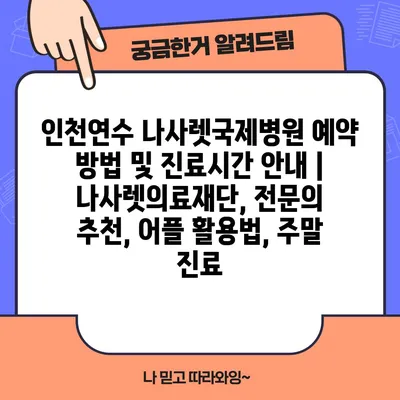 인천연수 나사렛국제병원 예약 방법 및 진료시간 안내 | 나사렛의료재단, 전문의 추천, 어플 활용법, 주말 진료