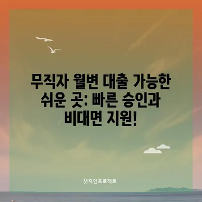 무직자 월변 대출 가능한 곳 쉬운곳 간편 빠른 승인 비대면 무직자 월변 대출의 필요성 무직자라도 갑작스럽게 자금이 필요할 때가 있습니다. …