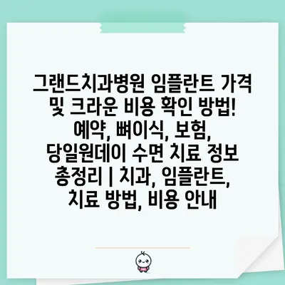 그랜드치과병원 임플란트 가격 및 크라운 비용 확인 방법! 예약, 뼈이식, 보험, 당일원데이 수면 치료 정보 총정리 임플란트 치료를 생각하고 있다면, …