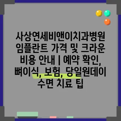 사상연세비앤이치과병원 임플란트 가격 및 크라운 비용 안내 | 예약 확인, 뼈이식, 보험, 당일원데이 수면 치료 팁